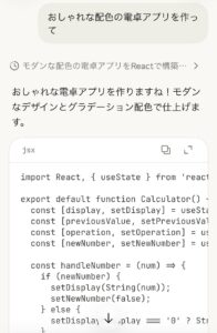 3.ステップ3:チャット欄に「おしゃれな配色の電卓アプリを作って」と入力し、右画面で動作を確認します。気に入らなければ「もっとボタンを大きくして」と会話で修正可能です。